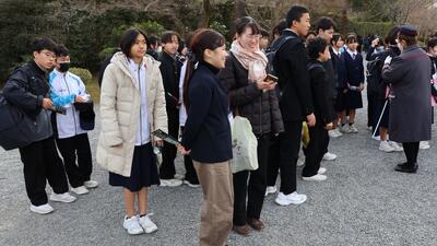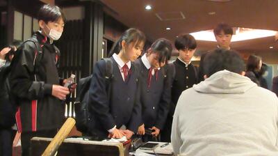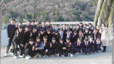 クラス別行動では1組、3組、4組が平等院に、2組が嵐山に行きました。その後、京都駅近くの旅館で昼食をいただき、徒歩で京都駅に向かいました。本日は昨日までと違い、とても寒いです。小雪が舞っていました。