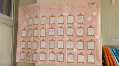 6時間目の学活の時間は修学旅行の振り返りとカウントダウンカレンダー作りを行っていました。1、2年生も残すところ、約40日になってしまいました。1年の締めくくりを行うとともに進級に向けての心の準備をしないといけない時期にきましたね。時が過ぎるのが本当に早いです。