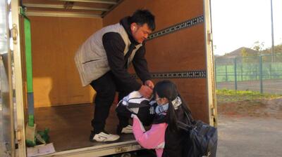 2年生は明後日からの修学旅行になります。今朝は事前に送る大きな荷物の積み込みを行いました。いつもの荷物と2つあったため、大変そうでしたが、楽しみにしている表情も見られました。