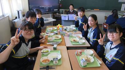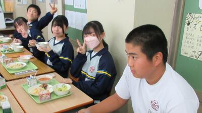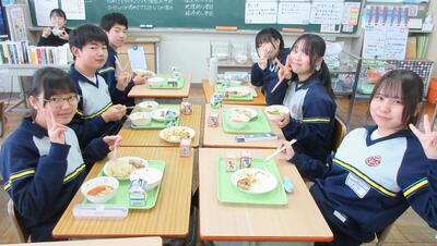 本日が2学期最後の給食でした。ケーキもあり、どのクラスも和やかな雰囲気で食べていました。
