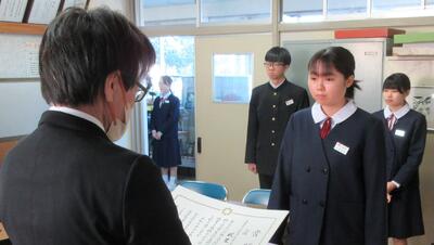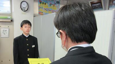 1時間目、リモートで行いました。たくさんの生徒たちが表彰されました。おめでとうございます。