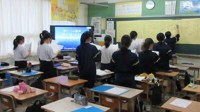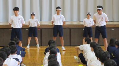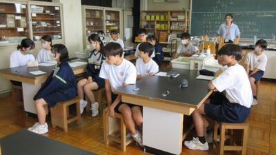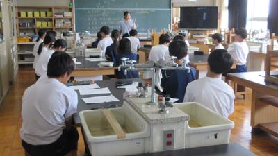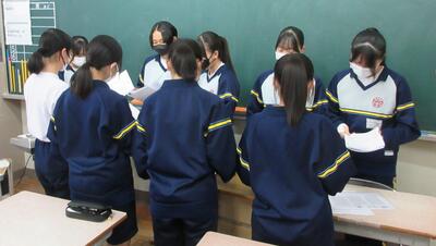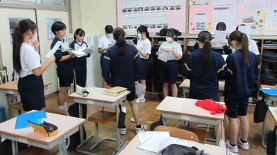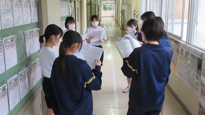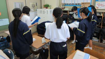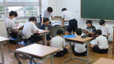 昼休みに理科室で行われました。今週の金曜日の朝に行われる新人班大会の壮行会の準備でした。