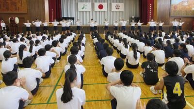 朝、体育館で行われました。来週の水曜日から大会は始まります。