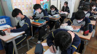 本日は県公立高校の入学許可候補者の発表日です。間もなくWeb上で発表されます。そのため、リモートで学活を行いました。