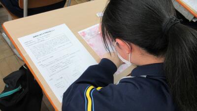 中学校卒業後の学びの道について学習をリモートで行いました。