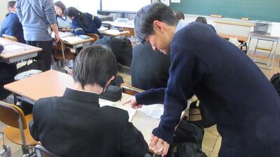 放課後に来週行われる公立高校の面接に備え、練習を行っています。