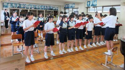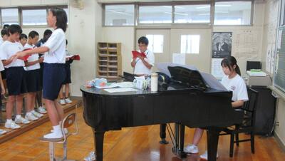 6時間目はクラス曲の練習をパート別練習を中心に行っていました。