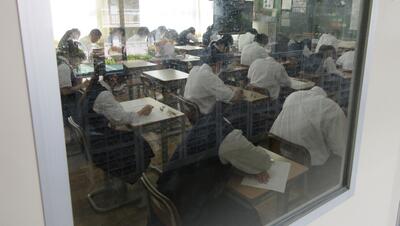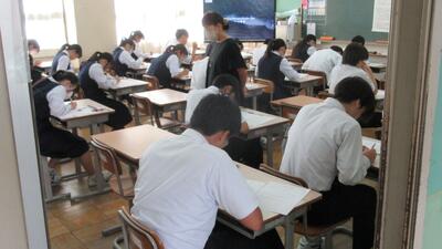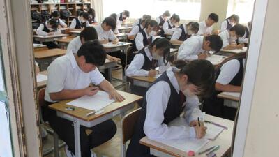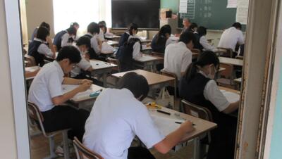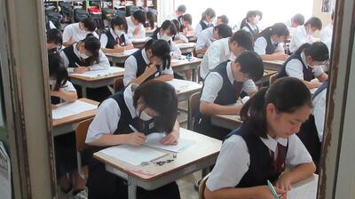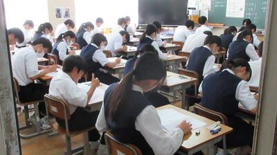 本日は中間テスト1日目でした。3年生の試験中の様子を写真に収めてみました。