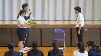 10月20日(月)教育実習最終日 投稿: 赤見台中学校 (10/20) 本日が教育実習最終日でした。清掃終了後、2年生は武道場で、3年生は体育館でそれぞれお別れ会を行いました。2名の先生、お疲れ様でした。赤見台中学校での実習の経験を活かし、立派な先生になってください。 2年 3年 Tweet -