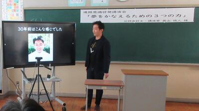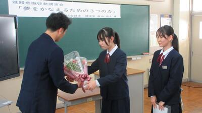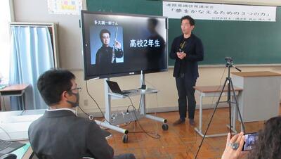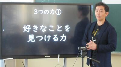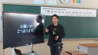 公認会計士・講演家で、本校の卒業生でもあり、そして本年度6月には吹奏楽部へ楽器(3種類)を寄贈していただきました眞山徳人様をお招きして、「夢をかなえるための3つの力」という演題でリモートによる講演をしていただきました。とてもわかりやすく、そして身近に感じることができるお話でした。お忙しい中、本校生徒のためにご講演いただき、誠にありがとうございました。