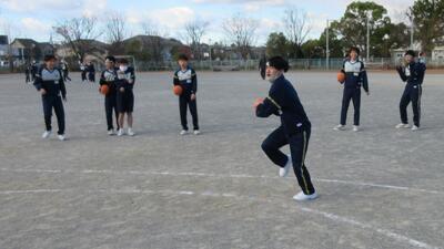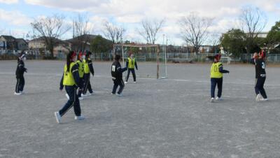 かなり寒さを感じましたが、とても元気よく取り組んでいました。ハンドボールの授業でした。