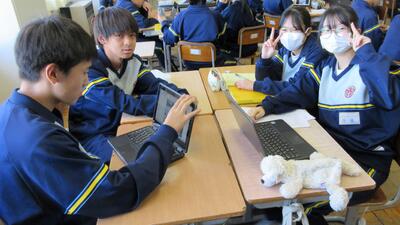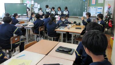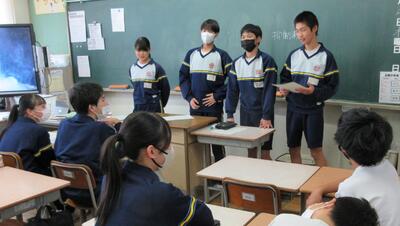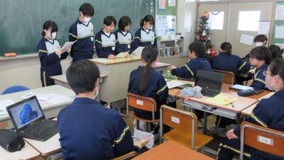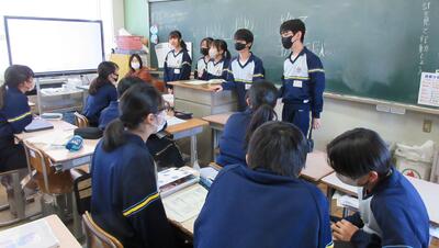 修学旅行の生活きまりの話し合いの後、班別行動のコースを決めていました。とても和やかな雰囲気でした。