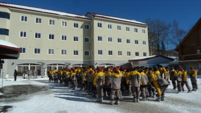 1月12日(月)スキー林間学校1日目②(13:50時点) 投稿: 赤見台中学校 (01/12) 昨日の菅平は、猛吹雪でしたが、本日は、雲一つない快晴無風です。 道路の混雑もなく、11:00に到着し、12:00から昼食でした。 13:15開校式の様子 開校式後は、各班に分かれ、スキー講習を行っています。 現在、全て予定通り順調に進んでいます。 Tweet -
