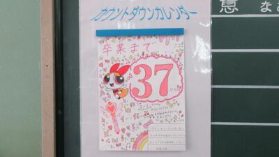 1月15日(木)朝の風景及びカウントダウンカレンダー 投稿: 赤見台中学校 (09:00) 本日は1年生が振替休業日でお休みです。 今朝も朝日や富士山を見る風景は最高でした。 3年生の教室には「カウントダウンカレンダー」が掲示してありました。中学校卒業まで、あと37日。受験のことで頭が一杯だと思いますが、大切に過ごしていきたいですね。 Tweet -