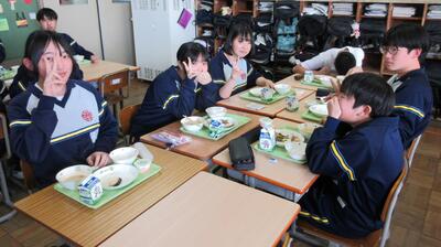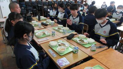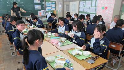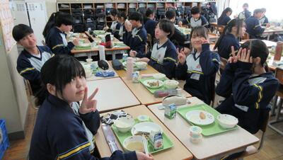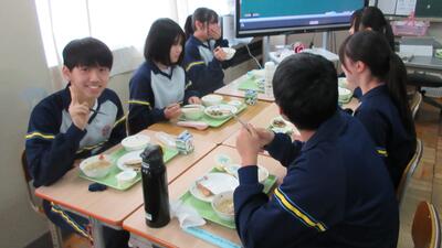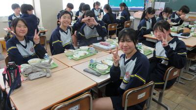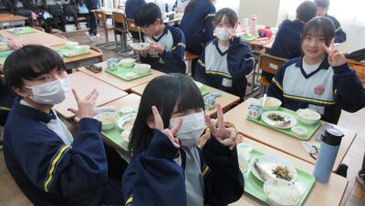 1月26日(月)給食の時間(パンジー学級・3年) 投稿: 赤見台中学校 (17:50) 授業中は緊張感がありますが、給食の時間はとても和やかな雰囲気です。私立高校の入試が一段落し、ホッとしている様子が伺えます。 Tweet -