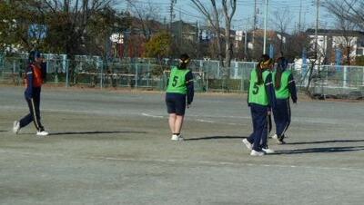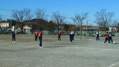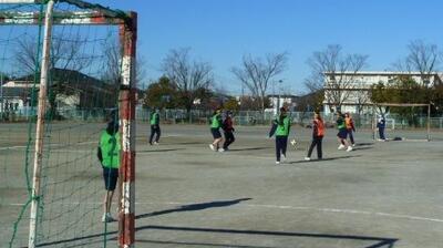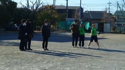 箕田小、赤一小、赤二小の担当の先生をお招きし、体育の授業研究会を行いました。3年生のサッカーの授業でした。