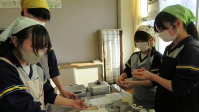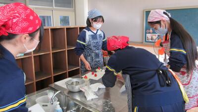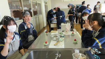 2月2日(月)調理実習(3年) 投稿: 赤見台中学校 (02/02) 班で協力していちご大福を作りました。大福の生地は白玉粉、砂糖、水をかき混ぜ、蒸し器で約10分蒸して作りました。美味しくいただくことができました。美味しい物を食べるときの表情はやはりいいですね。 Tweet -