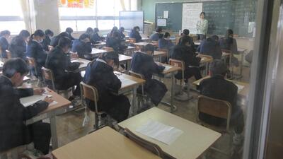 2月26日(木)学年末テスト(1、2年) 投稿: 赤見台中学校 (12:40) 1,2年生は本日より学年末テストが始まりました。本日が4教科4時間、明日が4教科3時間になります。年度の締めくくりに相応しい結果が残るように1、2年生も頑張れ! Tweet -
