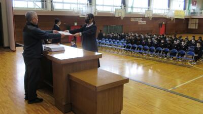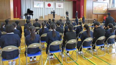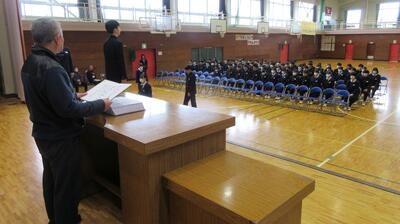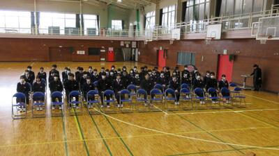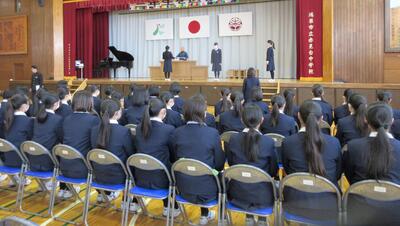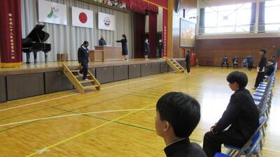 卒業証書の授与の場面を中心に練習を行いました。一体感を感じるしっかりとした所作、動きになっています。