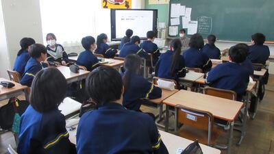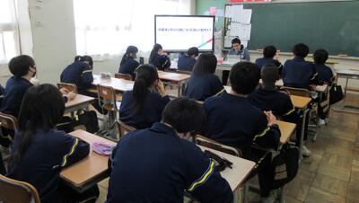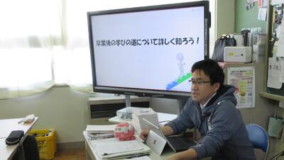 中学校卒業後の学びの道について学習をリモートで行いました。