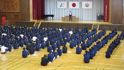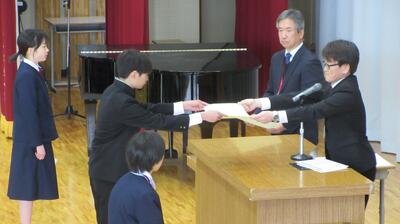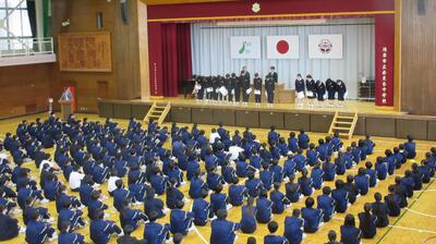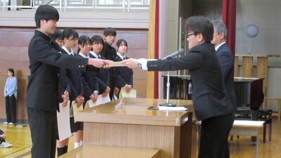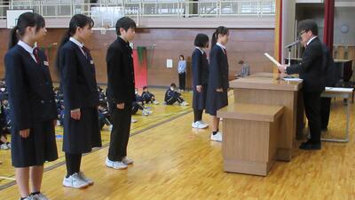 1時間目に体育館で行いました。表彰された生徒の皆さん、おめでとうございます。
