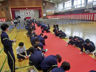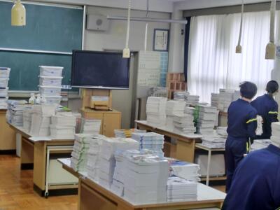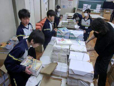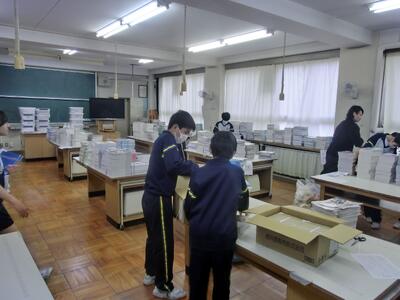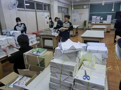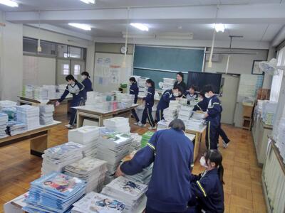 4月7日(火)準備はOKです!新2,3年生の皆さんご苦労様 投稿: 赤見台中学校 (12:08) 今日は新2,3年生の準備登校。新3年生は入学式会場の準備、新2年生は教室の整備を行いました。手際よく作業を進め、予定の時間には完了です。みなさんご苦労様でした。 新入生の皆さん、入学式の準備は完了しました。お待ちしています! 新しい教科書を、各学年、クラスごとに分けてもらいました。 Tweet -