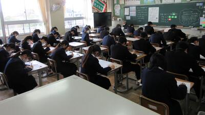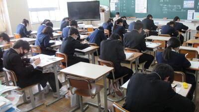 ⑵ 期末テスト1日目でした。午前中4時間で行われました。これまでの準備はしっかりできて、今日はベストを尽くせたでしょうか?明日も期待しています。