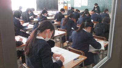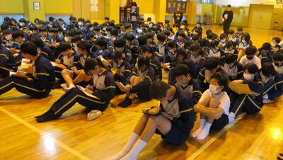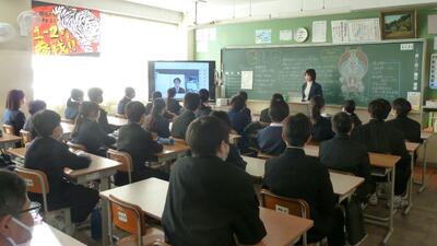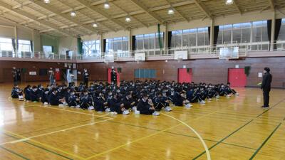 リモートで行いました。各学年の代表者が述べた「3学期の抱負」はとてもよかったです。特に3年生の代表者の発表は受験生としての思い、そして3月に卒業式を控えた思いが率直に述べられ、素晴らしかったです。