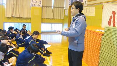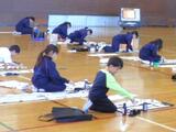 12日から始まるスキー林間学校に備え、体育館で行っていました。